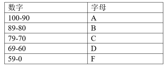 各位申请PSU的时候会有涉及到成绩转换,将数字转换为字母成绩。当各位来到PSU开始大三或者语言培训时,PSU大多采取以下评分方式。