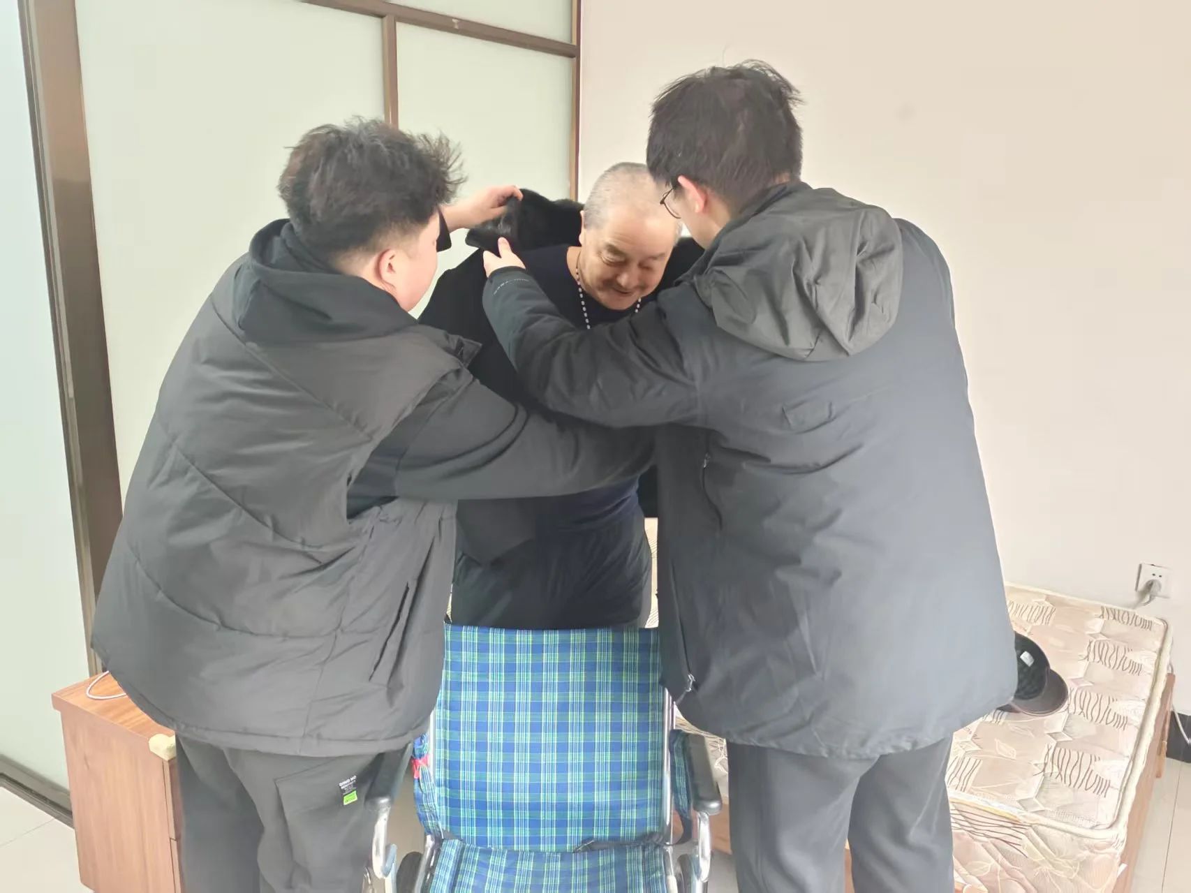 为增添乐趣,志愿者精心策划了一系列活动。在手工制作环节,志愿者和老人一起折纸、做剪纸,老人们手把手传授技巧,大家齐心协力完成一幅幅精美作品,温馨又欢乐。考虑到老人的健康需求,志愿者们精心准备了一场健身操活动。宽敞的院子里,志愿者们站在老人们身前,动作标准且缓慢地示范着每一个健身操动作。抬手、扩胸、踢腿,每一个动作都伴随着志愿者清晰的口号声。一开始,老人们还有些放不开,但在志愿者热情的鼓励下,渐渐都跟着动了起来。老人们虽然手脚不太灵活,但也努力模仿着动作,脸上洋溢着认真的神情。在欢快的节奏中,老人们的身体逐渐舒展,笑声回荡在整个院子,大家的热情被充分点燃,现场气氛十分热烈。此外,志愿者们还带来了爱心捐赠物资,保暖用品、水果等一一送到老人手中,老人们感动不已,连声道谢。