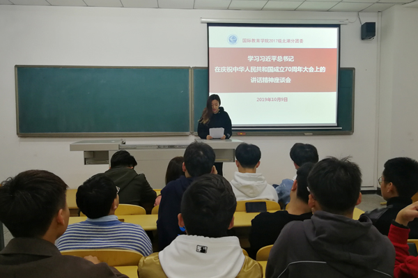 团委书记于伟主持召开团学干部学习座谈会。北湖校区团委副书记张澜馨领学了习近平总书记讲话全文。学生党员、团干部分别畅谈学习感悟,认为习近平总书记的重要讲话深情礼赞了新中国70年取得的伟大成就,豪迈宣示了前进征程上不断创造新的历史伟业的坚强决心和坚定信心,发出了“继续把我们的人民共和国巩固好、发展好,继续为实现‘两个一百年’奋斗目标、实现中华民族伟大复兴的中国梦而努力奋斗”的伟大号召,给人以鼓舞、给人以方向、给人以力量。