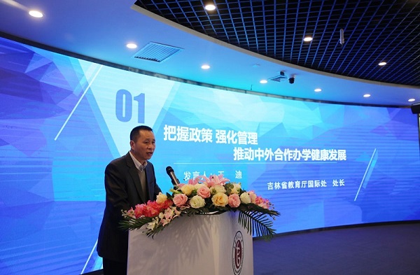 省教育厅国际合作与交流处正处级调研员王迪做主旨发言
