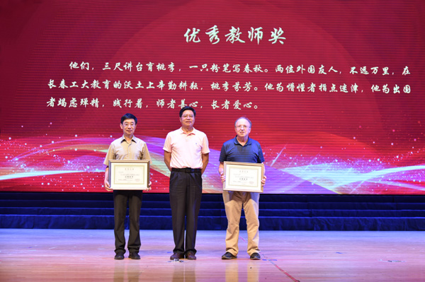 副校长李占国为中外合作办学项目杰出外方教师颁发“优秀教师奖”