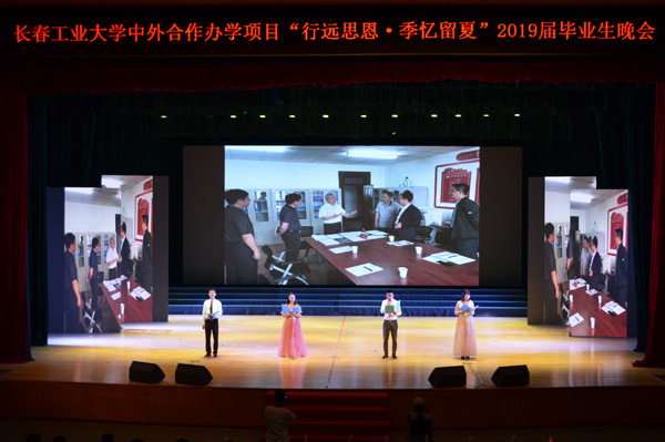 中外合作办学项目“行远思恩,季忆留夏”2019届毕业生晚会在这里隆重举行。校党委书记王忠、副校长李占国、党委副书记李雁冰,美国奥克兰大学盖瑞·巴博尔教授、美国波特兰州立大学李斧教授,校党委学生工作部、团委负责人,合作项目教学培养单位党政负责人、系主任应邀出席。BBIN
