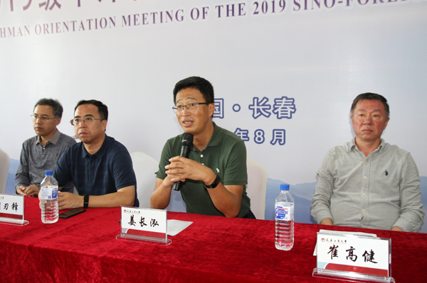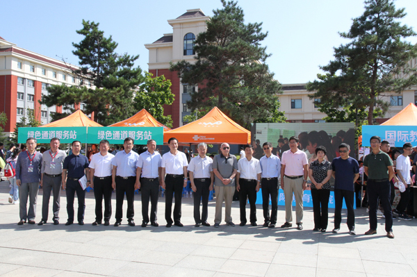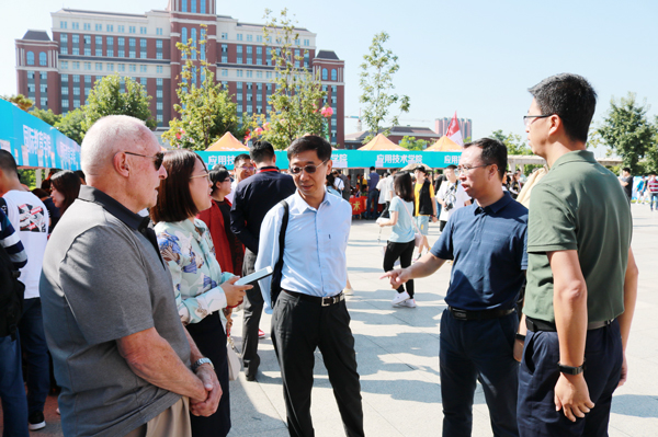 党总支书记胡刃锋、院长姜长泓向党委书记王忠、校长张会轩详细介绍了迎新准备工作及新生报到情况。领导们还与到访的美国波特兰州立大学人员合影留念。