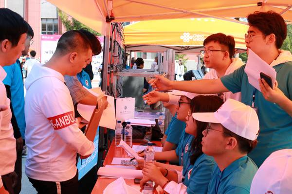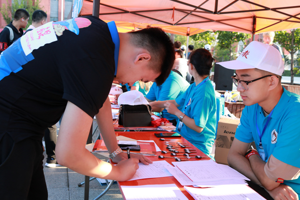志愿者们从早上5点就开始了忙碌的迎新准备工作。今年报到仍采取“一对一”方式,每名新生由一名志愿者全程带领办理注册报到手续,耐心细致地为新生和家长答疑解惑。BBIN