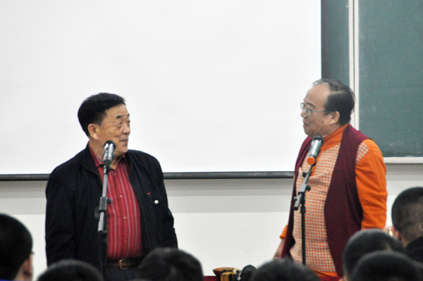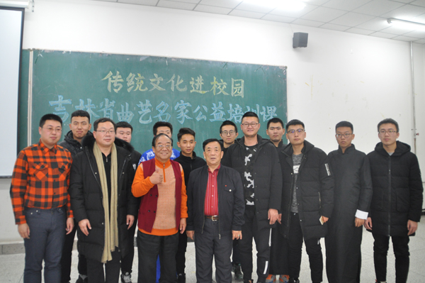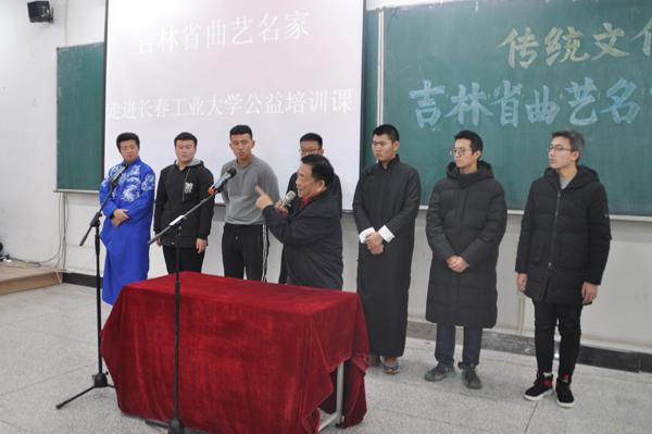 在北湖校区举行“传统文化进校园”活动,邀请吉林省曲艺名家、国家一级演员李长安、李宗义作公益培训课,活动由省曲艺家协会外联部主任王明海主持。