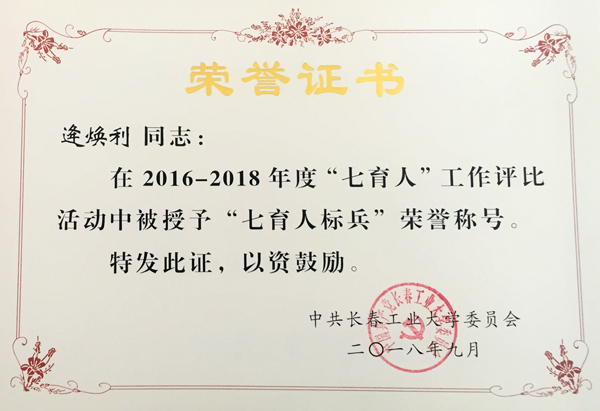 副院长逄焕利被授予“‘七育人’标兵”称号