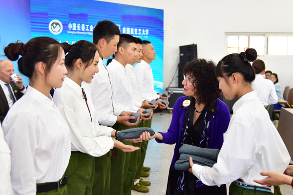 将提供各自的优质教学资源,开展广泛教育交流,努力将学生培养成具有国际化视野的复合型工程技术人才。奥拉·佩斯科维茨、卢埃·查姆拉还与李占国一同为新生代表赠送了奥克兰大学纪念T恤。