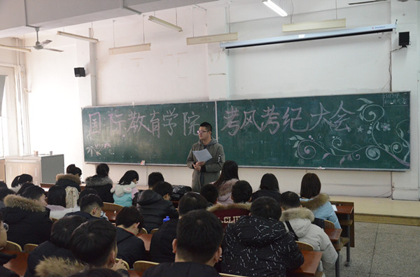 为严肃考风考纪,于12月11日至12月15日期间在南湖、北湖两个校区面向四个年级的所有学生分别召开了诚信考试专题教育大会,由各年级辅导员针对2015年11月1日施行的《刑法修正案(九)》相关内容以及《BBIN