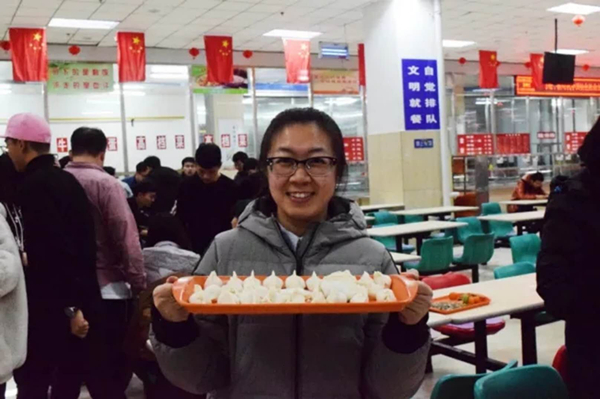 活动中,学生按班分成小组。小组中,分工明确,和面、搓球、擀面皮、包饺子,师生们都心灵手巧,现场秩序井井有条,不时还穿插有动人的歌声,整个气氛温暖备至。一盘盘煮好的饺子刚端上桌面,就被大家一抢而空。最后,参加活动的同学合影留念。