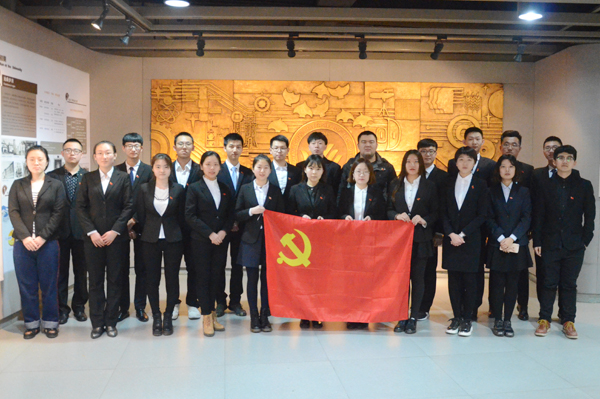 学生党员在校史馆合影留念