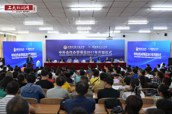 在北湖校区举行与美国奥克兰大学中外合作办学项目2017年开班仪式。副校长李占国,美国奥克兰大学工程与计算机科学BBIN