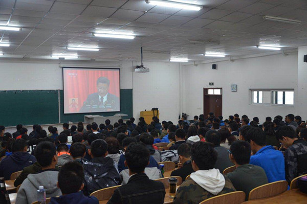 教职工更深入地了解了中国社会目前的发展形势,认真学习了党的十九大精神,清楚了党对我国建设的伟大宏图。在党的十九大会议中习近平总书记指出,中国社会主要矛盾已经转化为人民日益增长的美好生活需要和不平衡不充分的发展之间的矛盾。