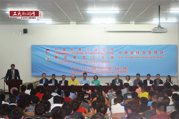 在北湖校区举行美国奥克兰大学中外合作办 学项目2016级新生开学仪式。 副校长李占国教授,美国奥克兰大学工程与计算机科学BBIN