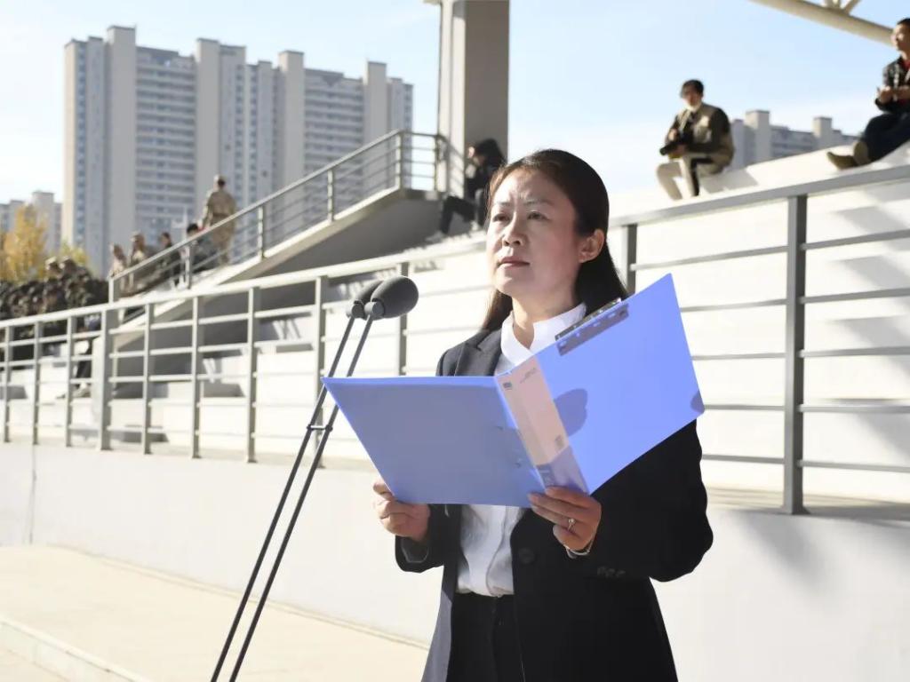 党委副书记李东玲发表讲话,对全体带训教官和教职员工表示诚挚的感谢,对参训新生在军训过程中取得的卓越成绩和在结训仪式中表现出的青春风采给予充分的肯定,并对军训中表现优秀的新生和教官进行了表彰。希望新生们能够把军训中学习到的精神运用到今后的学习和生活中去,不断提高自己,为实现更高远的目标而努力奋斗。