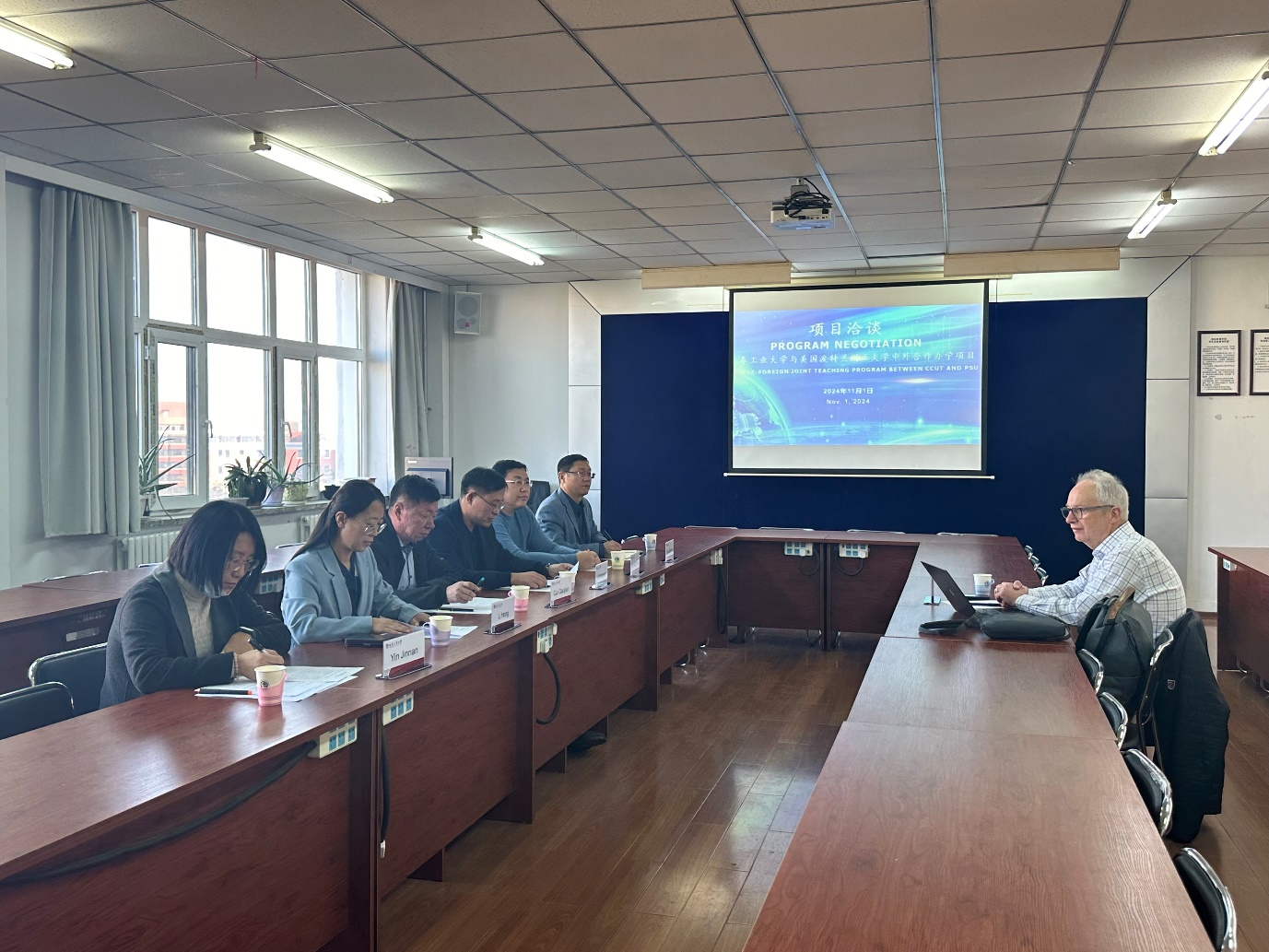 相关负责人与美国波特兰州立大学代表进行了项目交流洽谈会。双方代表高度肯定了两校合作办学项目所取得的进展和成就,对合作项目近期的重点工作和长期规划进行了深入研究,就外语教学、开拓短期留学项目、学生暑期交流项目等方面工作达成了共识。项目洽谈会的召开,对合作办学项目教学工作的推动,对两校合作办学项目的顺利实施,以及教学活动的顺利开展具有重要意义。