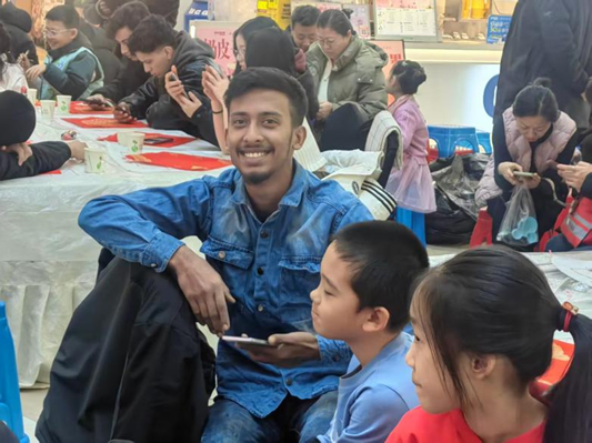 活动的核心环节“亲子挥毫共书福”将中外文化交流推向高潮。在专业书法家的指导下,留学生们与中国家庭结对成组,共同体验中国书法艺术的魅力。铺宣纸、润毛笔、调墨汁……孩子们在家长和留学生哥哥姐姐的协助下,认真书写着寓意吉祥的“福”字。